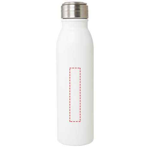 RCS-sertifioidusta ruostumattomasta teräksestä valmistettu yksiseinäinen vesipullo, jossa on kierrettävä, roisketiivis kansi ja kestävä sinkkiseoksesta valmistettu kantolenkki. BPA-vapaa, testattu ja hyväksytty Saksan elintarviketurvallisuuslainsäädännön (LFGB) mukaisesti. Testattu ja hyväksytty ftalaattipitoisuuden suhteen REACH-määräysten mukaisesti. Sopii useimpiin tavallisiin auton mukinpidikkeisiin. Tilavuus on 700 ml. Suositellaan pestäväksi käsin. Toimitetaan kierrätetystä kartongista valmistetussa lahjapakkauksessa.