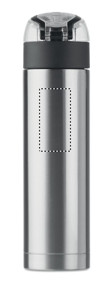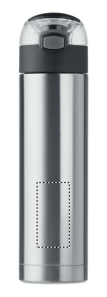 Kaksiseinäinen ruostumattomasta teräksestä valmistettu 400 ml juomapullo, turvalukko kannessa ja helppo paina-avataksesi optio, vuoto vapaa.