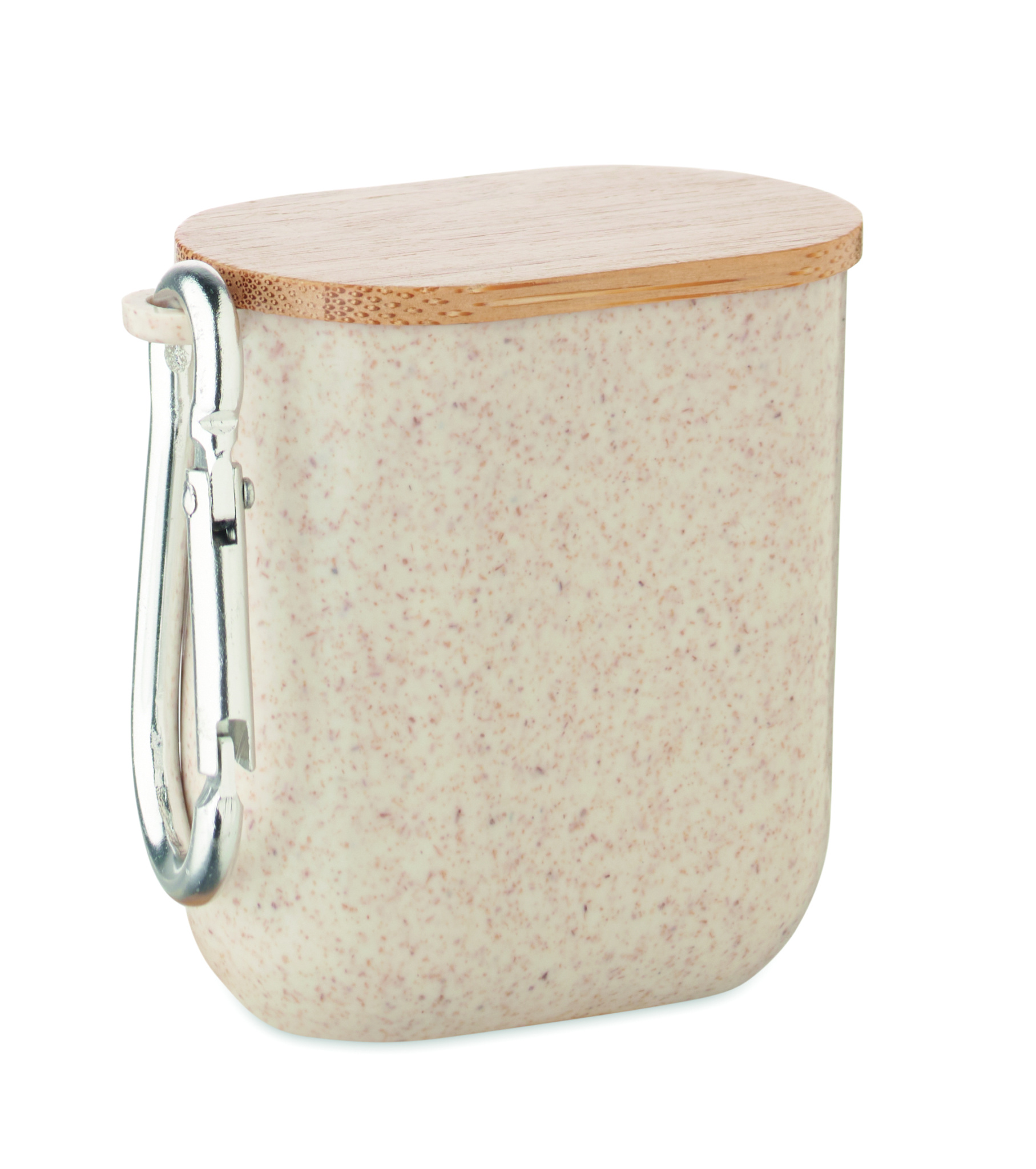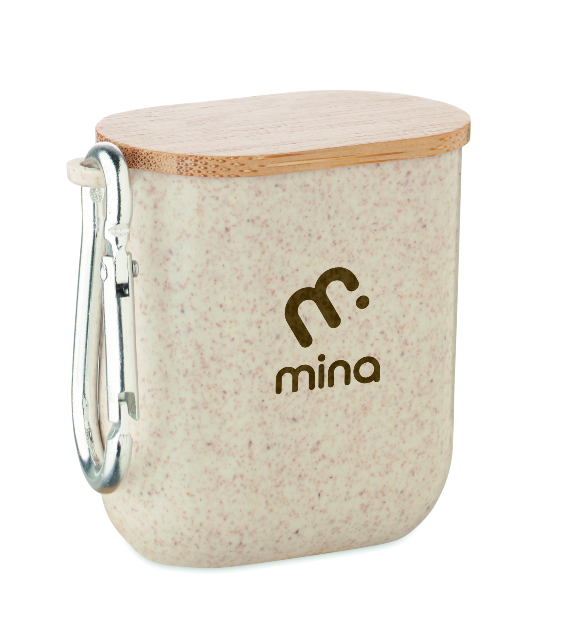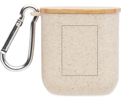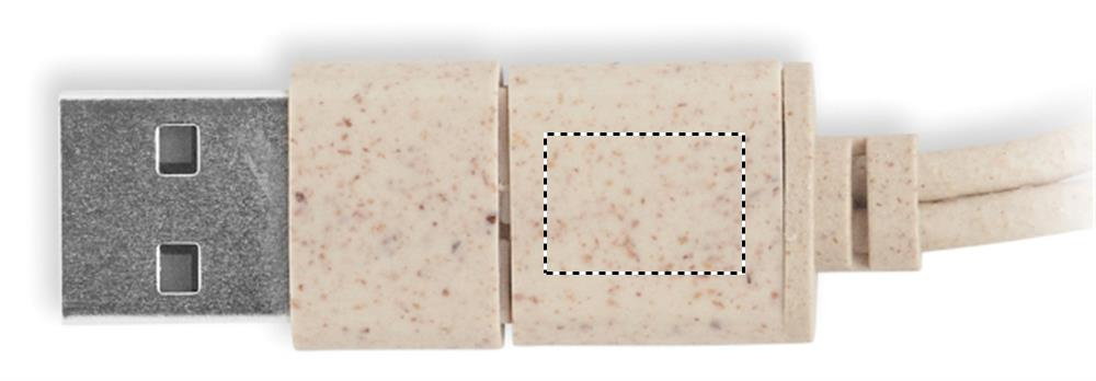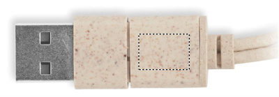 Kaapelisarja vehnänolki-/ABS-kotelossa, bambupäällinen ja karbiinihaka. Kansi toimii puhelintelineenä (vaakasuorassa asennossa). Kaapelitulo 2in1 USB-C/A, lähtö Type-C ja 2in1-nastainen.