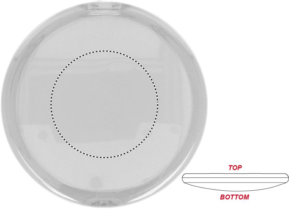 Kompakti kaksipuoleinen taskupeili, tuotteen väri läpikuultava.