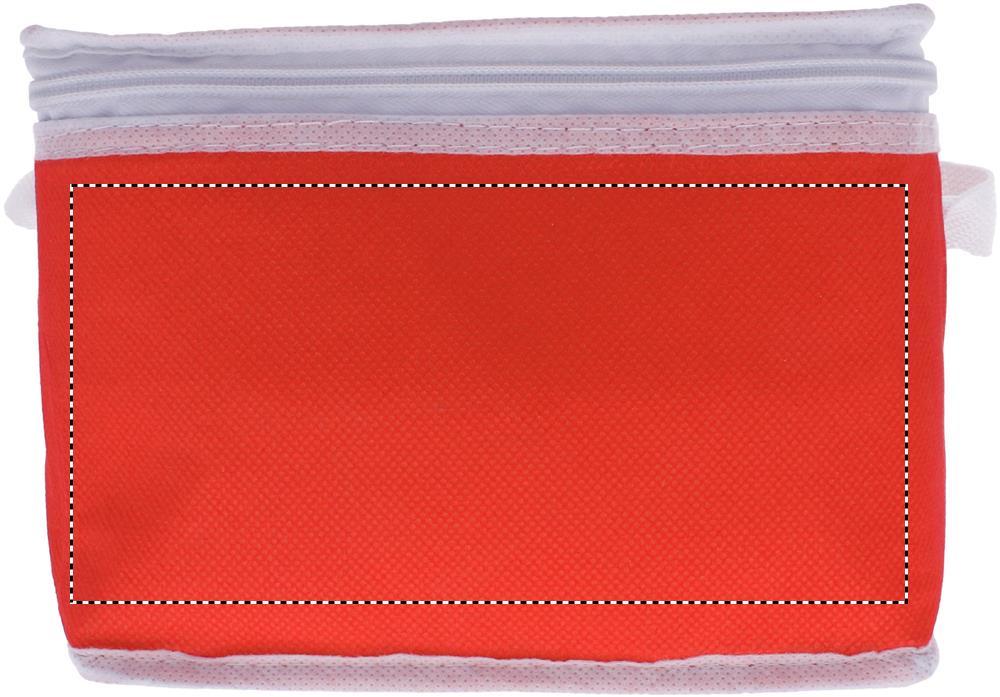 Alumiinifolioinen kylmälaukku, tilaa 6 tölkille. Ulkoinen materiaali kuitukangasta, valkoisilla reunuksilla. 80 g / m².