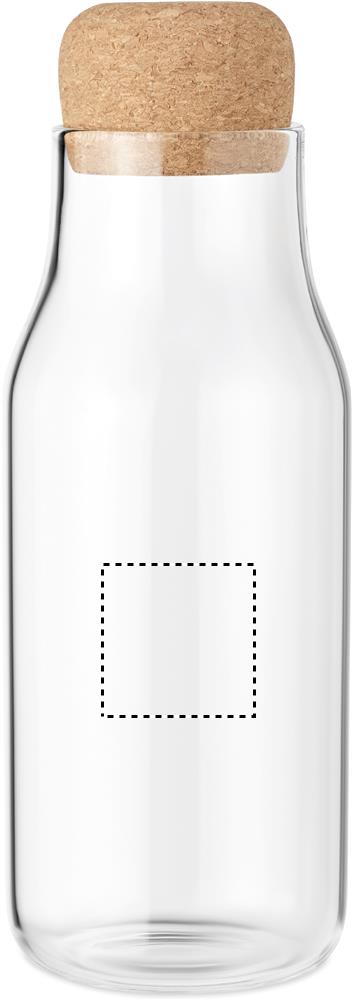 600 ml borosilikaattilasipullo korkista valmistetulla korkilla. Borosilikaattilasiin ei voi kaiverruttaa.