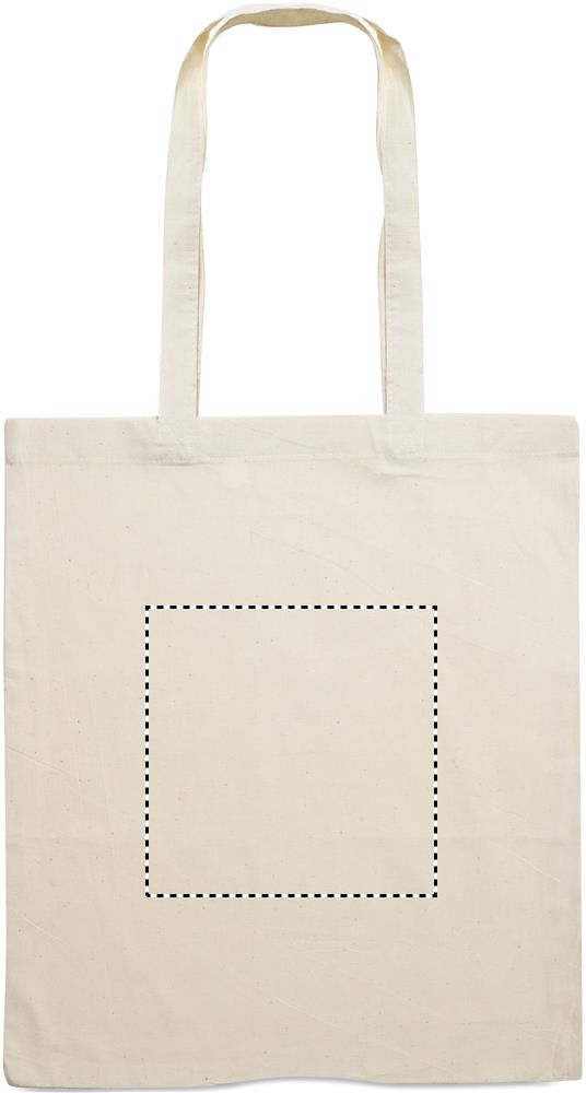 Ostoskassi pitkillä kahvoilla, materiaali luomupuuvillaa, 180 gr/m². Valmistettu EU:ssa