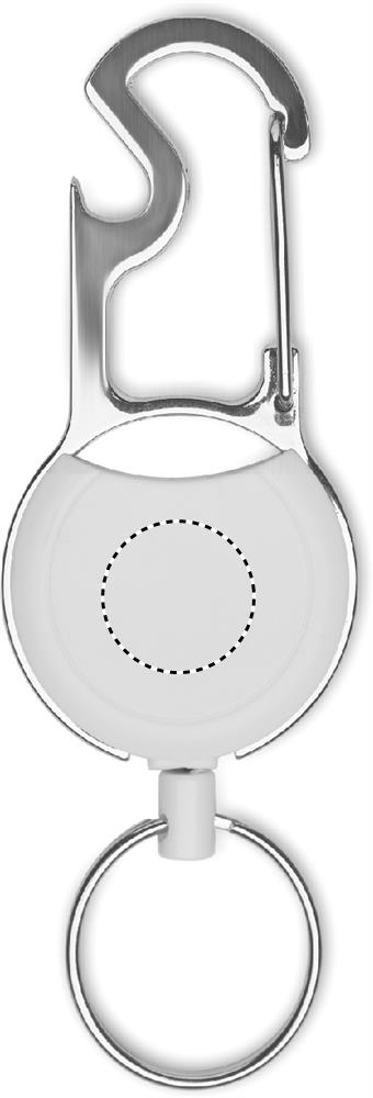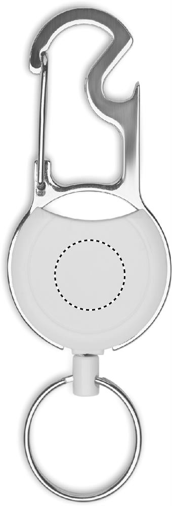ABS-materiaalista valmistettu sisäänvedettävä nimikortin idike, jossa on klipsi, avainrengas ja pullonavaaja.