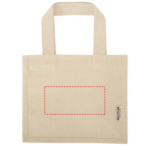 100-prosenttisesti GRS-kierrätetystä 220 g/m²:n puuvillasta valmistettu Odessa-minikangaskassi vahvikkeilla on suunniteltu niin, että sitä on miellyttävä kantaa 35 cm pitkien kahvojen ja suuren tilan ansiosta. Tämä kompakti kassi on täydellinen valinta tabletin, kirjan tai muutaman välttämättömyysesineen säilyttämiseen, päivittäisten asioiden hoitoon tai rentoihin illanviettoihin. Siihen sopivat painatusmenetelmät ovat myös GRS-sertifioituja, millä varmistetaan, että koko toimitusketju on läpinäkyvä ja sertifioitu. Valmistettu Intiassa.