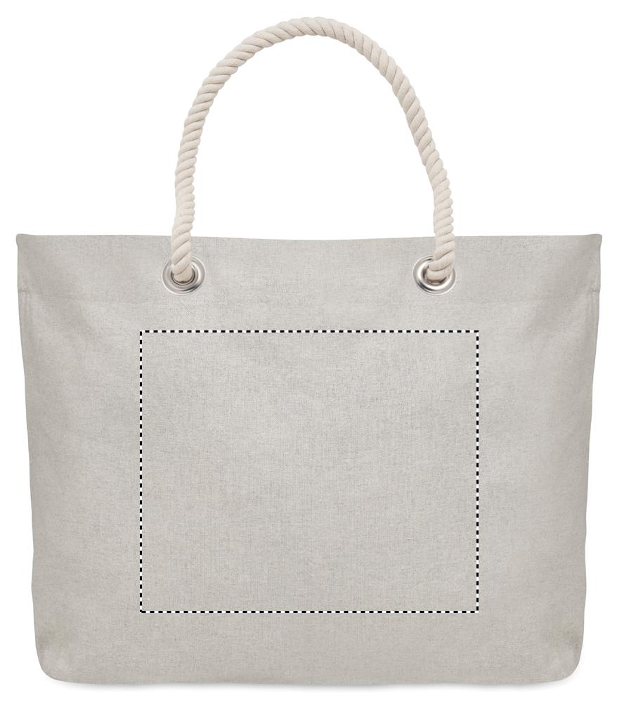 Ranta- tai ostoskassi kierrätyspuuvillaa, punotut narukahvat. 220 gr/m².
