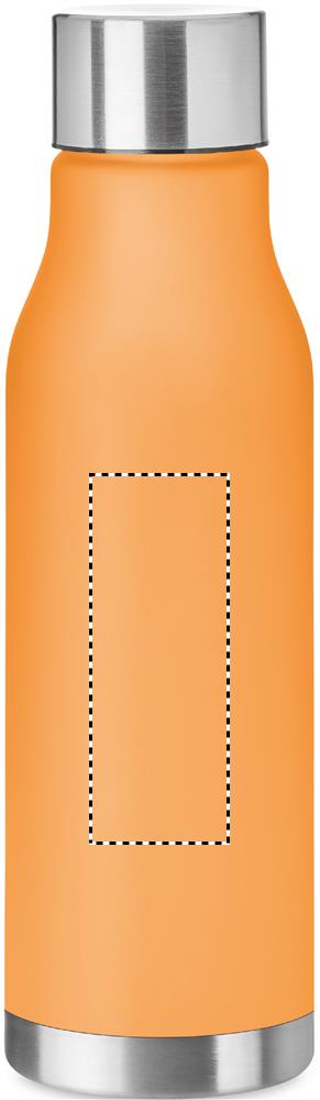 RPET 600 ml juomapullo kumisella pinnalla ja ruostumattomasta teräksestä valmistetulla korkilla. Tuote on BPA ja vuoto vapaa, ei sovellu käytettäväksi hiilihapollisilla nesteille.