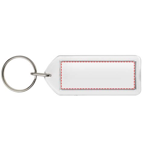 Kirkas suorakaiteenmuotoinen F1-avaimenperä, jossa on metallinen avainrengas. Tämän avaimenperän voi avata kolikolla. Metallirengas tekee profiilista litteän, mikä on ihanteellista postituksen kannalta. Tulosteinsertin mitat: 5,0 cm x 2,0 cm.