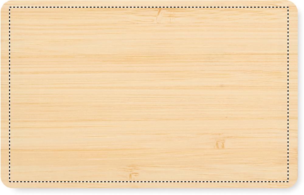 RFID apsaugos nuo nugriebimo kortelė bambukiniame dėkle. Naudodamas elektromagnetinį lauką, visos 13,56 MHz kortelės (traukiniuose, autobusuose, banko ar kredito kortelės) apsaugotos nuo elektroninio kirtiklio įkišimo 2-3 cm aplink kortelę. (1,3 mm). Bambukas yra natūralus produktas, gali šiek tiek skirtis kiekvieno gaminio spalva ir dydis, o tai gali turėti įtakos galutiniam dekoravimo rezultatui.