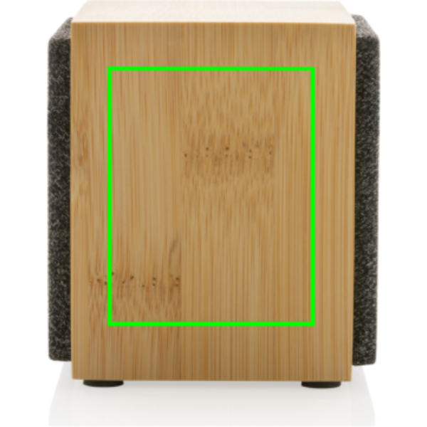 Prabangus 5 W garsiakalbis su aiškiu garsu ir stipriais žemaisiais dažniais. Išorinis korpusas pagamintas iš FSC 100% sertifikuoto bambuko. Plastikiniai komponentai pagaminti iš RCS (Recycled Claim Standard) sertifikuoto perdirbto ABS. Bendras perdirbtas kiekis: 24 % pagal bendrą prekės svorį. RCS sertifikatas užtikrina visiškai sertifikuotą perdirbtų medžiagų tiekimo grandinę. Garsiakalbyje yra BT 5.1, kad būtų lengva ir sklandžiai veikti iki 10 metrų ir sunaudoti mažai energijos. 1200 mah baterija leidžia žaisti iki 6 valandų ir gali būti visiškai įkrauta per 2 valandas. Su paėmimo funkcija ir mikrofonu atsiliepti į (vaizdo) skambučius. Supakuota, jei FSC mix kraft dėžutė. Įskaitant RCS sertifikuotą perdirbtą TPE įkrovimo laidą.