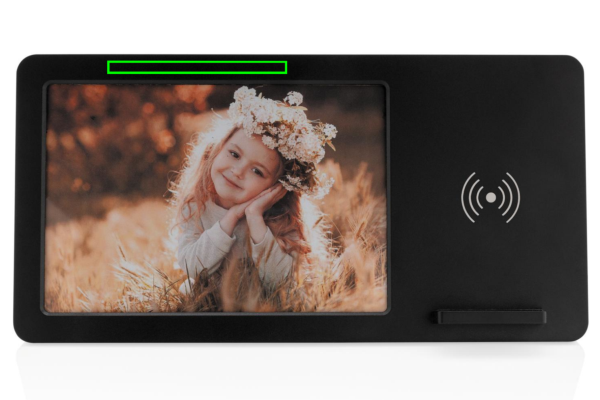 Logotrade dāvanas foto: 5 W bezvadu lādētājs un foto rāmis