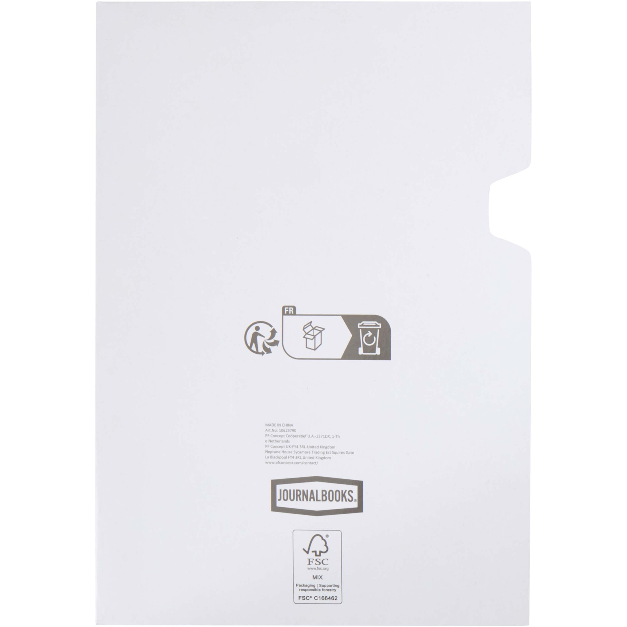 Alder A5 piezīmju grāmatiņa ir izgatavota no pārstrādātas, ādai līdzīgas plastmasas un ietver 192 loksnes 80 g/m² krēmkrāsas papīra ar ikdienas plānotāja izkārtojumu, kas ir ideāli piemērots dienasgrāmatas veidošanai un kārtības uzturēšanai visa gada garumā. Tai ir divas gumijas lentes, trīs grāmatzīmes ar lentīti (melna, sarkana un zila), 200 krāsainas mazas līmlapiņas (40 katrā krāsā) un ērta papīra kabatiņa brīvi novietojamām piezīmēm. Piezīmju grāmatiņai ir iespiests JournalBooks logotips uz aizmugurējā vāka, un tā ir ievietota baltā papīra apvalkā.