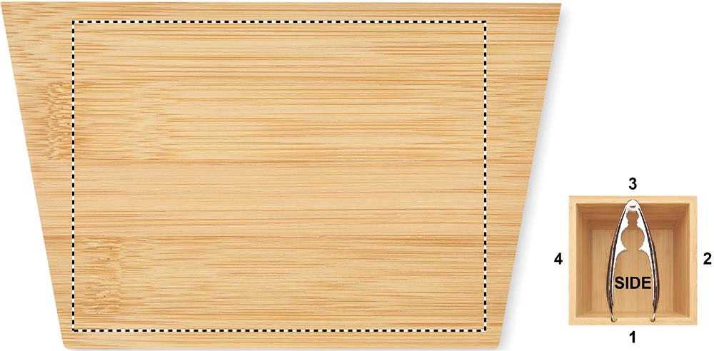 Riekstu grauzdēšanas komplekts ar bambusa bļodu un sudraba krāsas riekstu cepēju no cinka sakausējuma ar TPR rokturi. Bambuss ir dabisks produkts, katrai precei var būt nelielas krāsas un izmēra atšķirības, kas var ietekmēt gala apdares rezultātu.