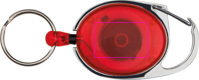 Atslēgu piekariņš ar nelielu āķīti, jostas klipsi un izvelkamu atslēgu piekariņu. Jūsu logotips tiks uzdrukāts uz krāsainā plastmasas laukuma.