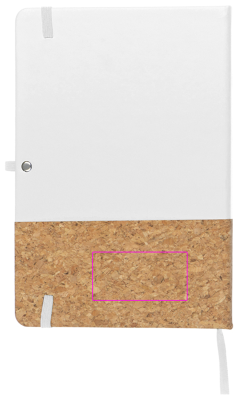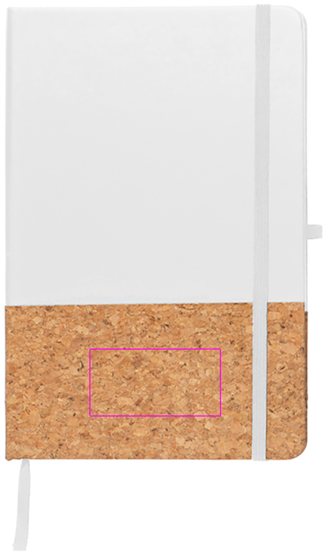 Блокнот формата А5 с 160 линованными страницами и обложкой из ПУ-пробки, закладкой, петлей для шариковой ручки и эластичной застежкой. Мы напечатаем ваш логотип спереди.