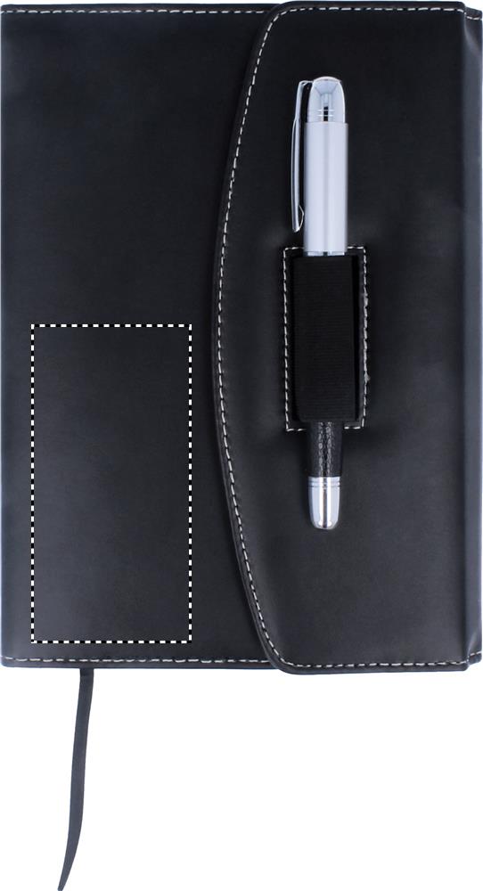 Блокнот формата А5 из искусственной кожи с контрастной строчкой. 120 листов линованной бумаги и металлическая ручка с черными чернилами.