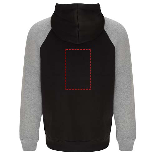 Двухцветное худи унисекс. Капюшон со перекрещенным вырезом и металлическими люверсами. Контрастный внутренний капюшон, шнурок и рукава реглан. Карман "кенгуру". Манжеты и подол связаны эластановой резинкой 1x1. Съемная этикетка.
