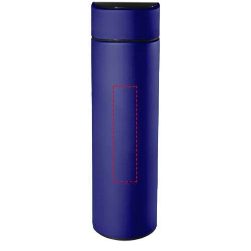 Герметично закрывающаяся бутылка из нержавеющей стали 500 мл с двойными стенками. Бутылка оснащена датчиком температуры. Благодаря системе «Touch & Light» температура напитка отображается на крышке бутылки (в градусах Цельсия). Подходит как для горячих, так и для холодных напитков. Поставляется в цилиндрической подарочной коробке из бумаги вторичной переработки. Размер: Ø 47 x 225 мм. Несъемный аккумулятор в комплекте: CR 2450 (3 В). Температура может отображаться 20 000 раз.