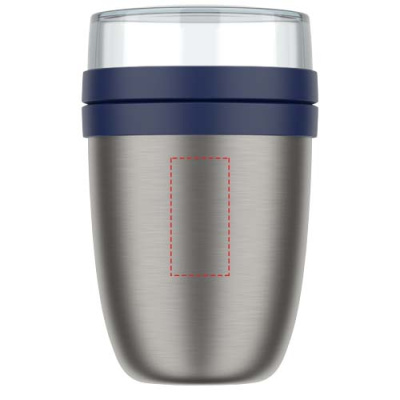 Герметичный пищевой контейнер с двумя раздельными отделениями, позволяющими хранить различные продукты отдельно друг от друга. Оба контейнера имеют отдельную крышку, чтобы ингредиенты не смешивались. Еда останется горячей в течение 6-8 часов и холодной в течение 12 часов. Объем верхнего прозрачного контейнера составляет 200 мл. Емкость нижнего контейнера составляет 500 мл. Изготовлен из прочного материала, внешняя часть контейнера остается холодной и сухой. Рекомендуется ручная мойка. Пластиковые части крышки можно мыть в посудомоечной машине.