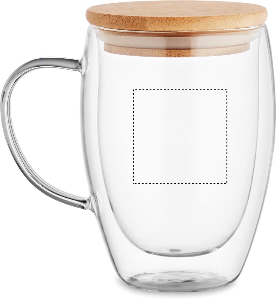 Кружка из боросиликатного стекла с двойными стенками, ручкой и бамбуковой крышкой. Объем: 300 мл.