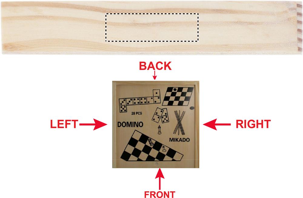 Деревянная коробка с домино, шахматами, шашками и деревянными палочками микадо.