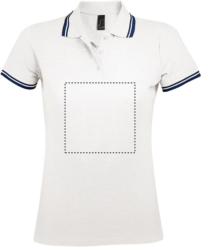 SOL'S PASADENA women polo shirt 200g. Не выходящий из моды и современный стиль. Широкая гамма цветов. Идеально подходит для всех типов рынков. Воротник и манжеты из ребра 1x1. Усиливающая лента на шее. Короткие рукава. Контрастные полоски на воротнике и манжетах. Застежка на 3 пуговицы в тон. Приталенный крой. Крой и шитье. Боковые разрезы. Запасная пуговица на внутреннем шве. Fabric details: 100% хлопок ''Ringspun''. OEKO-TEX. Only Sold with Print.