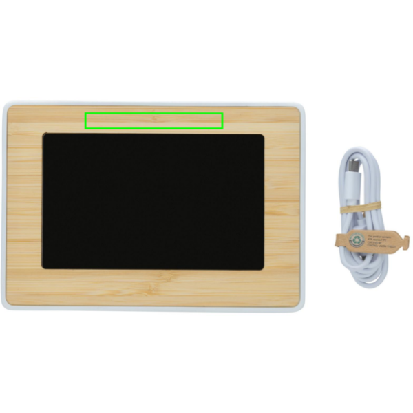 Большие светодиодные экранные часы, изготовленные из переработанного ABS-пластика, сертифицированного по стандарту RCS (Recycled Claim Standard), и бамбука FSC® на 100%. Общее содержание переработанных материалов: 76 % от общего веса изделия. Сертификация RCS гарантирует полностью сертифицированную цепочку поставок переработанных материалов. С высококачественным светодиодным экраном. Функции: часы, будильник, повтор, температура, режим 12/24 часа. В комплект входит зарядный кабель типа C длиной 100 см из переработанного TPE, сертифицированного по стандарту RCS. Упаковано в коробку из крафт-бумаги FSC®.