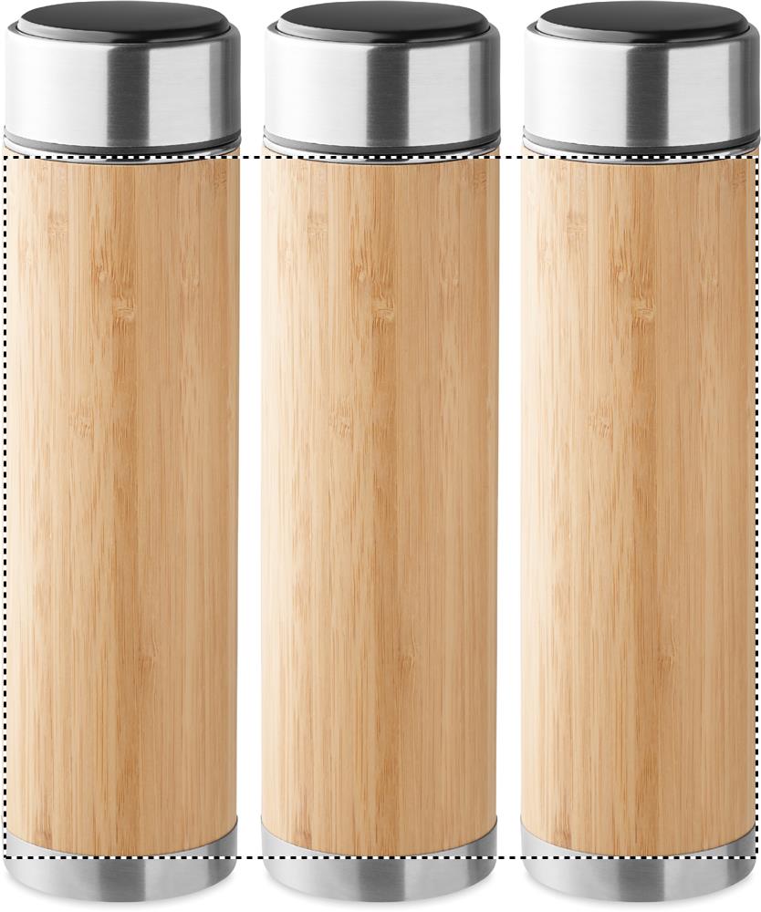 Термос с двойными стенками из нержавеющей стали и бамбука с заварочным ситечком. В крышке встроен термометр. В комплект входит 1 сменная батарея CR2032. Емкость: 480 мл. Полностью герметичен