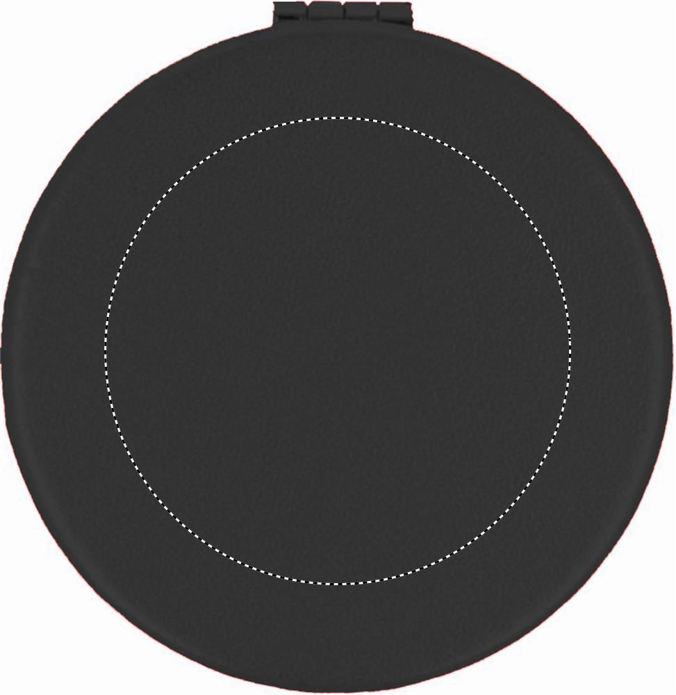 Двойное косметическое зеркальце круглой формы на магните с покрытием из полиуретана.