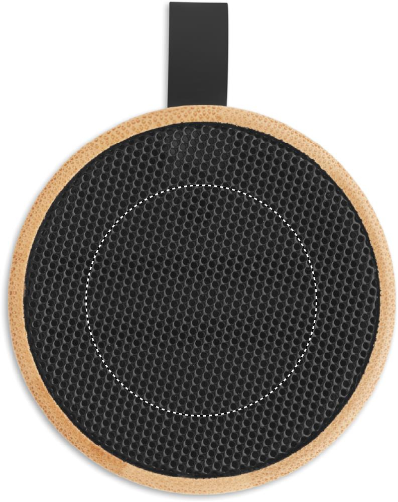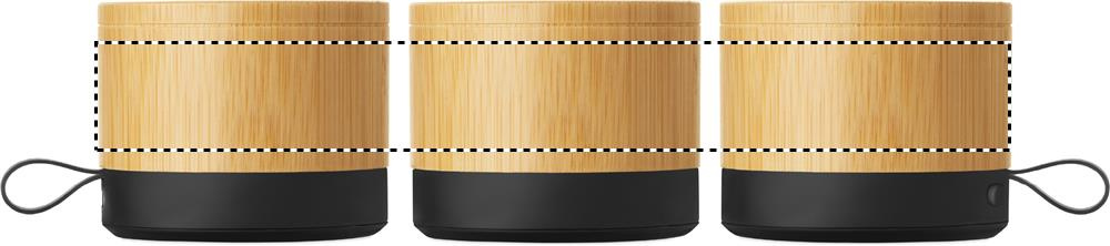 Trådlös 5.1-högtalare med hölje i bambu och bas i ABS. Har 3W monoljud. Inkluderar uppladdningsbart och utbytbart 500mAh batteri. Kompakt och modern design.