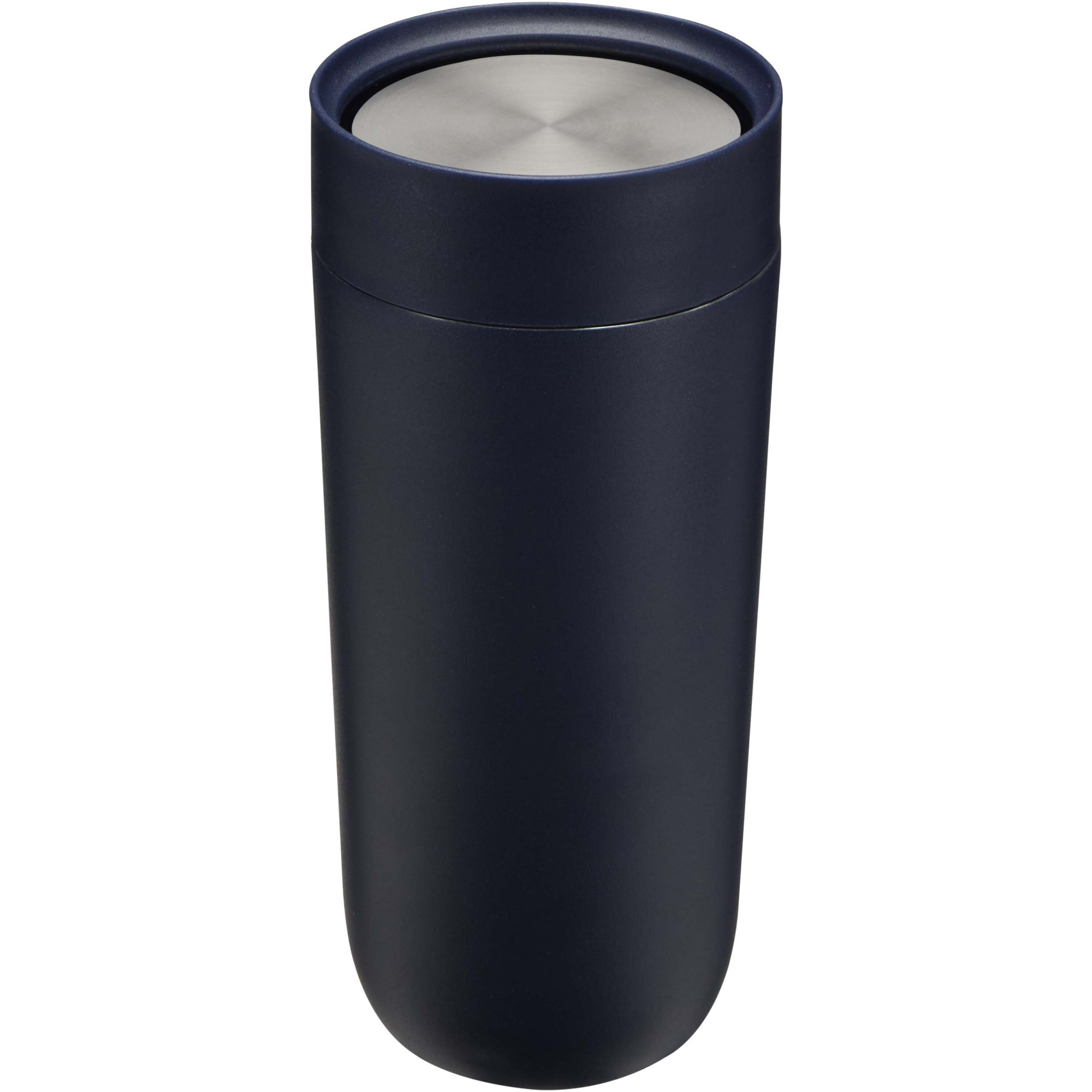 Förstklassig termos för användning när du är på språng med en praktisk öppningsmekanism i rostfritt stål som gör det möjligt att öppna den med en hand. RCS-certifierad stomme i rostfritt stål med slitstark ytbeläggning. Locket är tillverkat av RCS-certifierat rostfritt stål och PP-plast. Kopparplätering och keramisk beklädnad. Passar de flesta vanliga bilmugghållare. Håller dryckerna varma i tolv timmar eller kalla i 24 timmar. Levereras i en presentförpackning av återvunnen kartong. Volymkapacitet: 350 ml.