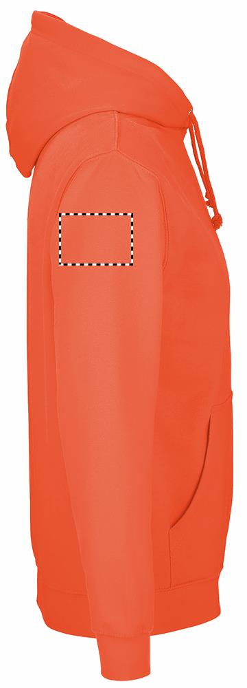 SOL'S CONDOR, SWEATSHIRT MED HUVA, UNISEX, 80 % bomull - 20% återvunnen polyester GRS-certifierad Borstad fleece 280, Släta ärmar, 1x1 ribbade muddar i ärmslut, krage och nederkant, Känguruficka, Fodrad huva med ton i ton-färgad dragsko och metallöglor för matchande storlekar, se storlekstabellen i avsnittet om produktdokumentation.
