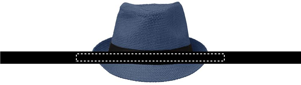 Stråhatt av papper med svart polyesterband. För otryckta beställningar kommer bandet att levereras utan att fästas på artiklarna.