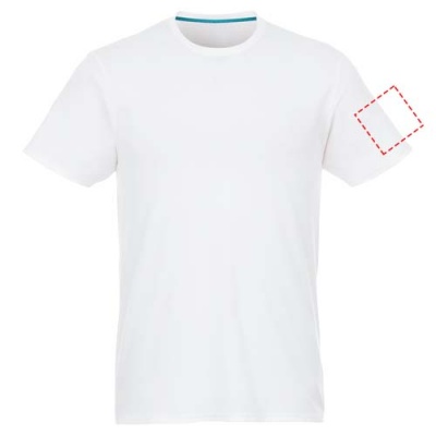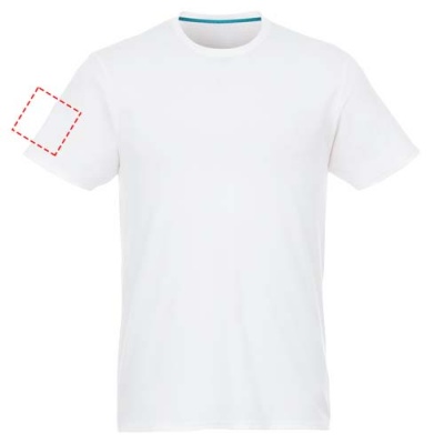 Jade kortärmad T-shirt för män med återvunnet material. Hållbara PR-plagg. Crewneck. Sidsömmar. Band mellan axlarna. Dubbelsömsdetaljer. Enkel jersey med 100 % återvunnen polyester. 160 g/m².