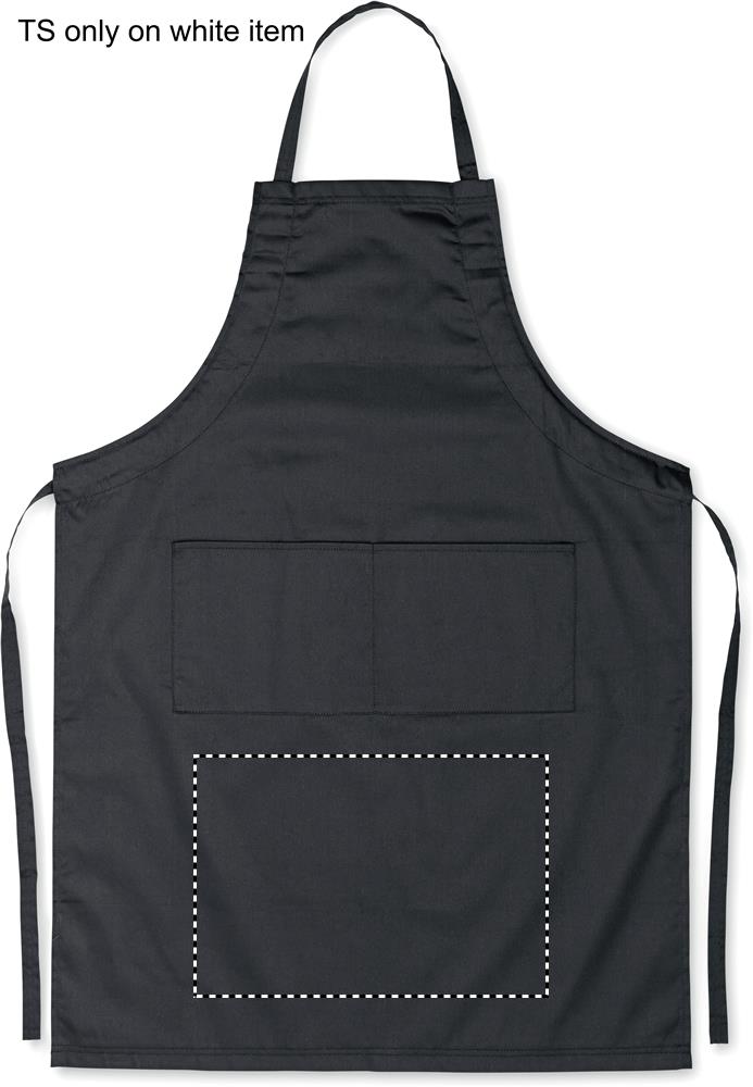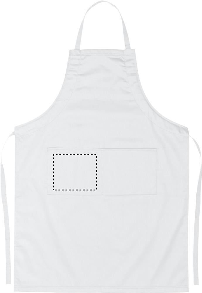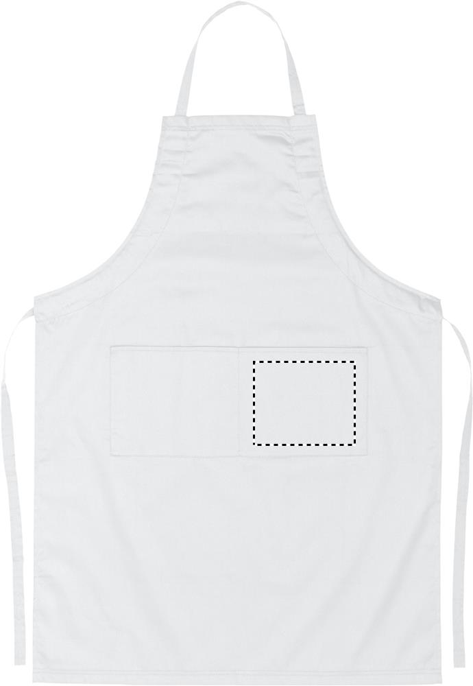 Förkläde med justerbart band som löper upp till halsen för bästa komfort. Två rymliga frontfickor. Material: 10% bomull/90% polyester, 190 g/m².