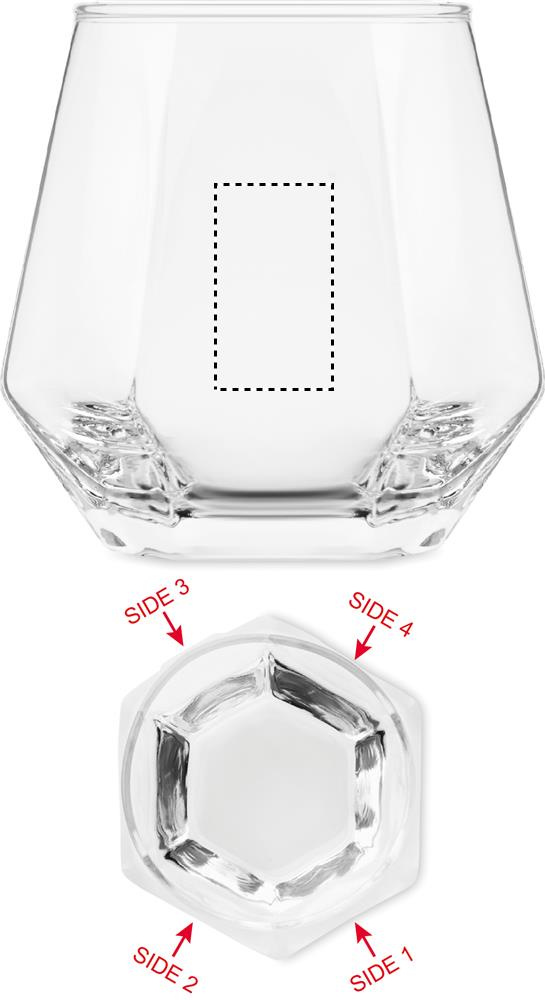 Geometriskt diamantformat lutande whiskeyglas. Volym: 300 ml.