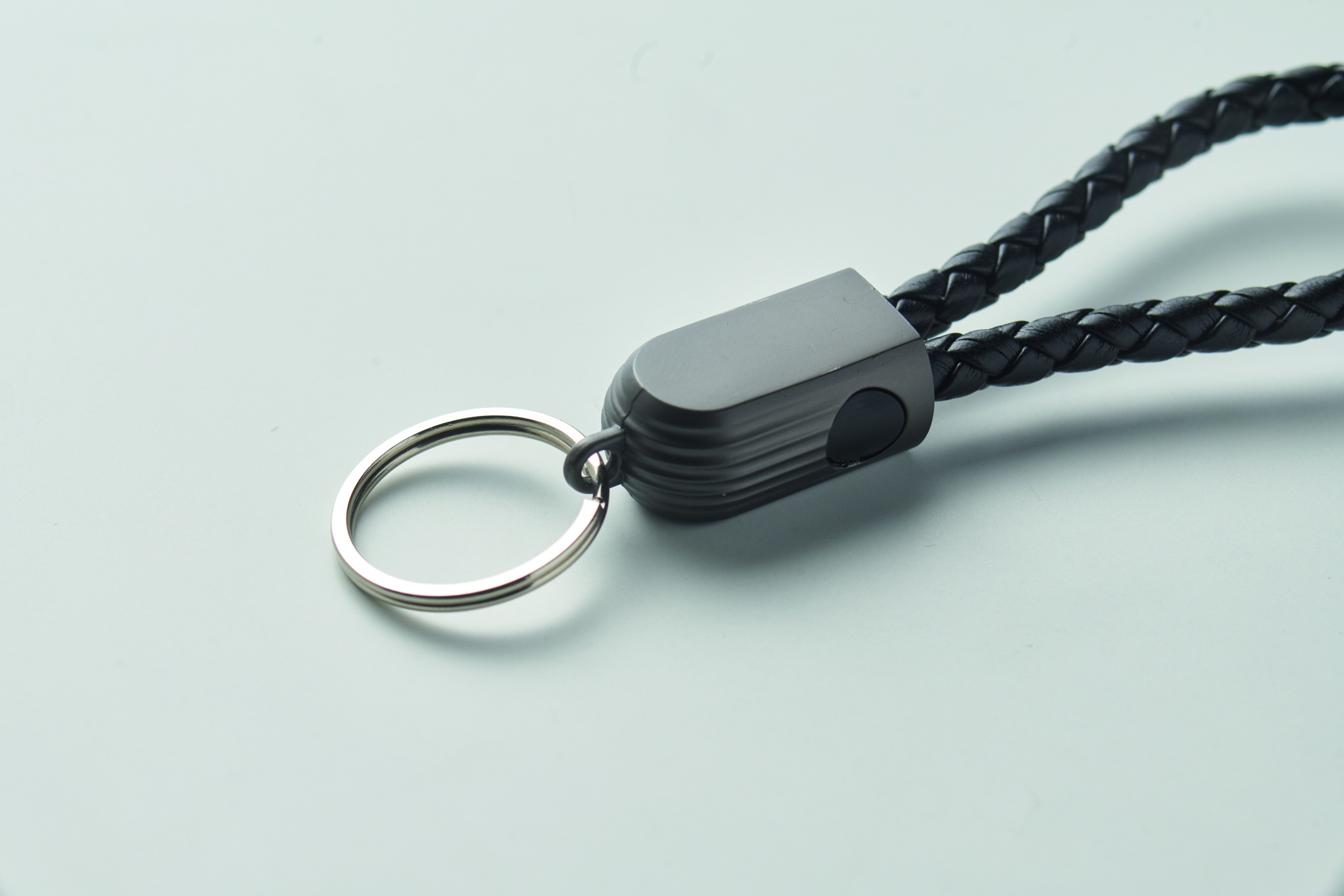 Nyckelring med laddnings- och dataöverföringskabel 60W, typ-C till typ-C i PU med flätad detalj i zinklegering.
