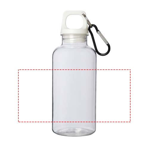 Med denna hållbara men ändå lätta 400 ml vattenflaska som är tillverkad av återvunnen plast kan du hålla dig hydrerad hela tiden. Det är den perfekta följeslagaren när du tränar, är på dagsturer eller på kontoret. Flaskan Oregon med enkelvägg har ett vridbart lock och gott om plats för att lägga till alla sorters logotyp. Fäst den bifogade karbinhaken (inte lämplig för klättring) säkert på en väska för att undvika att tappa den. BPA-fri, testad och godkänd enligt tysk lagstiftning om livsmedelssäkerhet (LFGB) och för ftalatinnehåll enligt REACH. Locket och flaskan är tillverkade av 100 % återvunnen plast.