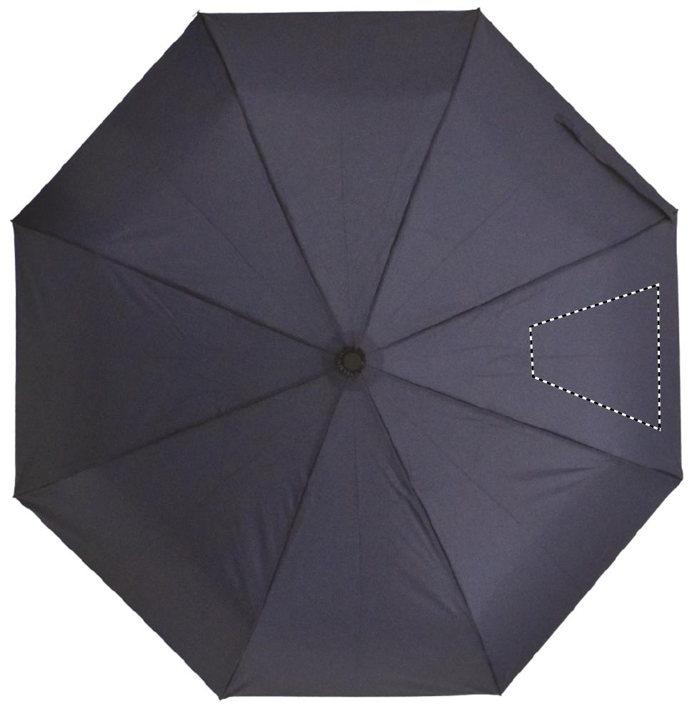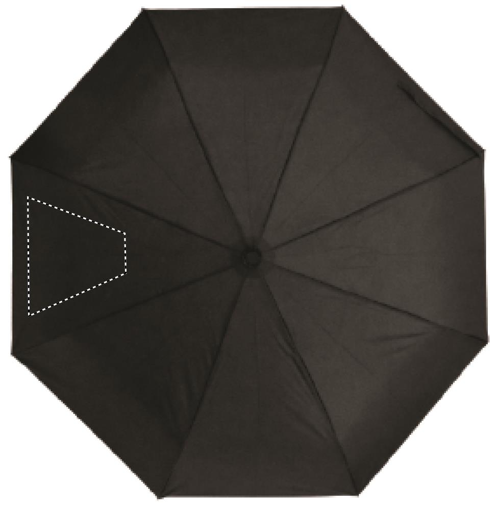 Kompaktparaply, 21 tum med 3 sektioner i exklusivt återvunnet RPET pongeetyg (190T), svartpläterad ram och ribbor. Handtag i trä. Manuell öppning och stängning. Inkl. matchande fodral.