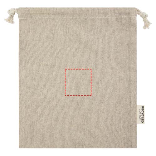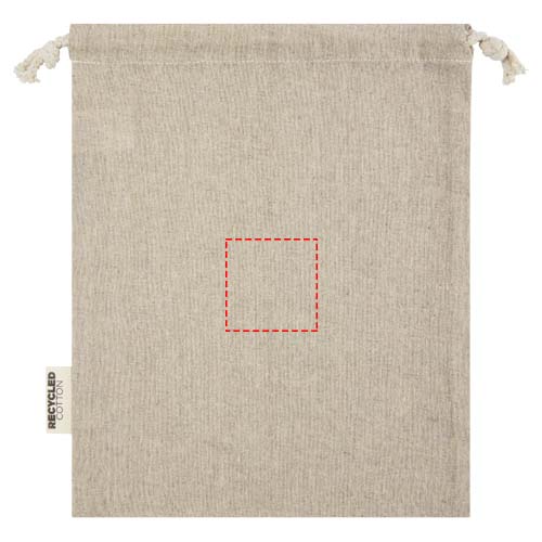 Presentpåse tillverkad av GRS-certifierad återvunnen bomull med bomullsdragsko. Idealisk att ge bort eller för förvaring av föremål. Det kan finnas mindre variationer i färgen på den faktiska produkten på grund av produktionsprocessens art. Storlek: 25 x 30 cm.