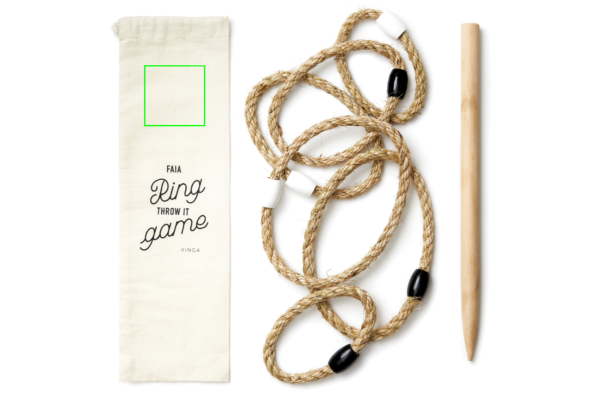 Detta utomhusspel fungerar lika bra på stranden som i parken och levereras i en bomullsväska som gör det enkelt att bära med sig. Spelet går ut på att kasta ringformade rep över en pinne som du helt enkelt sätter ner i marken. Ringarnas olika storlekar ger olika många poäng. Bruksanvisning ingår.